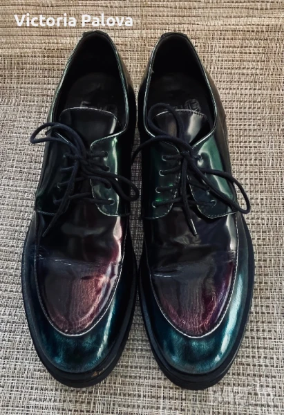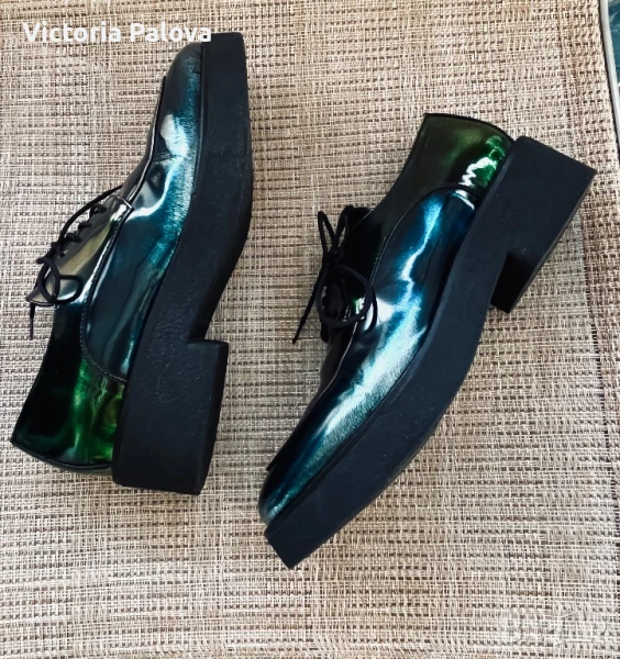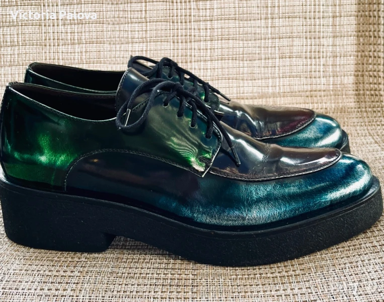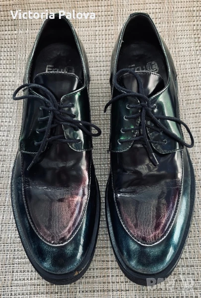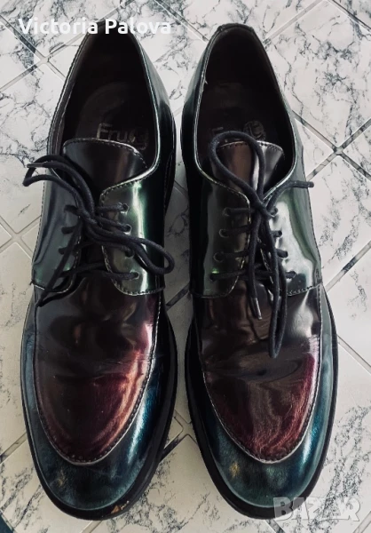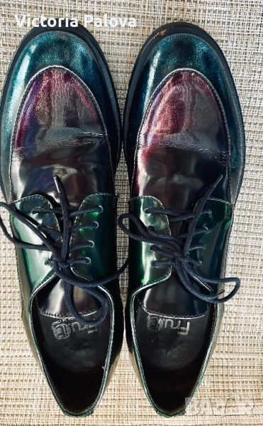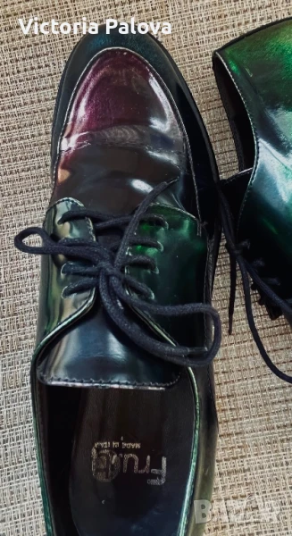 Скъпи красиви обувки “хамелеон”, променят си цвета според светлината - тъмнозелено, бордо, кафяво. Невероятно красиви и удобни, естествена кожа. Обувките FRU.IT въплъщават италианския дизайн и най-добрата изработка. Моделите на марката отразяват италианското отношение към живота. Дизайните и творенията на компанията са базирани на мода, специално насочена към ежедневна употреба. FRU.IT експериментира с форми, нови конструкции и си играе с разнообразието от фини кожи, за да отговори на изискванията за качество.