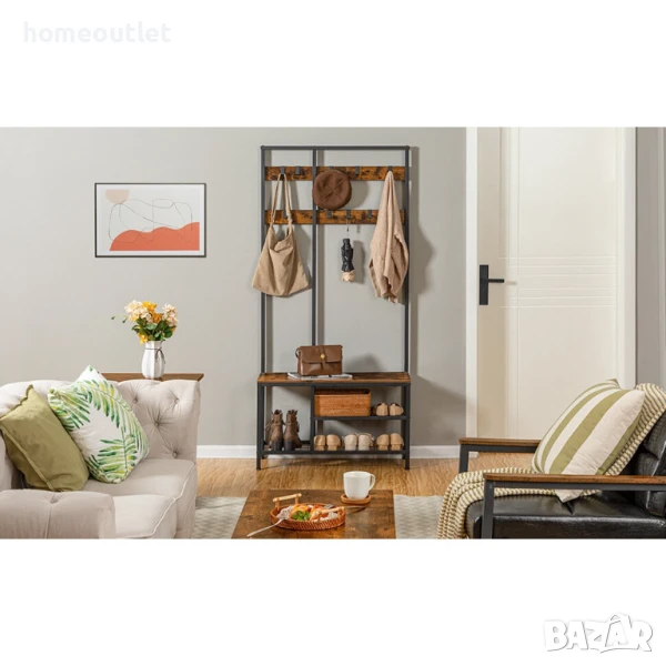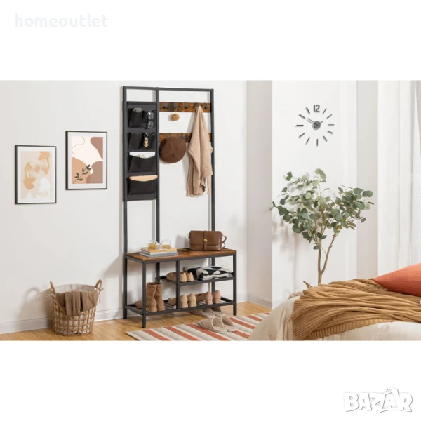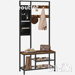 Закачалка за връхни дрехи и аксесоари, пейка, поставка за обувки, голям текстилен органайзер за съхранение - четири функции, които правят ежедневните неща лесно достъпни и добре организирани в антрето.