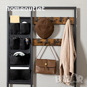 9-те куки са предназначени за окачване на якета и чанти, текстилният джоб за съхранение на ключове, документи, дребни вещи, козметика и др.