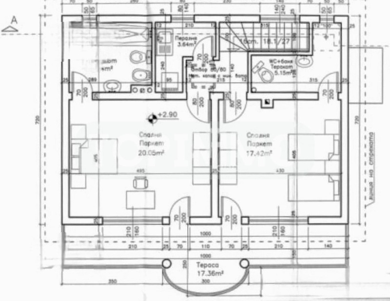 Трети етаж: голямо помещение с тераса, в което могат да се обособят една или две спални,просторен кабинет за работа, зала за игри .