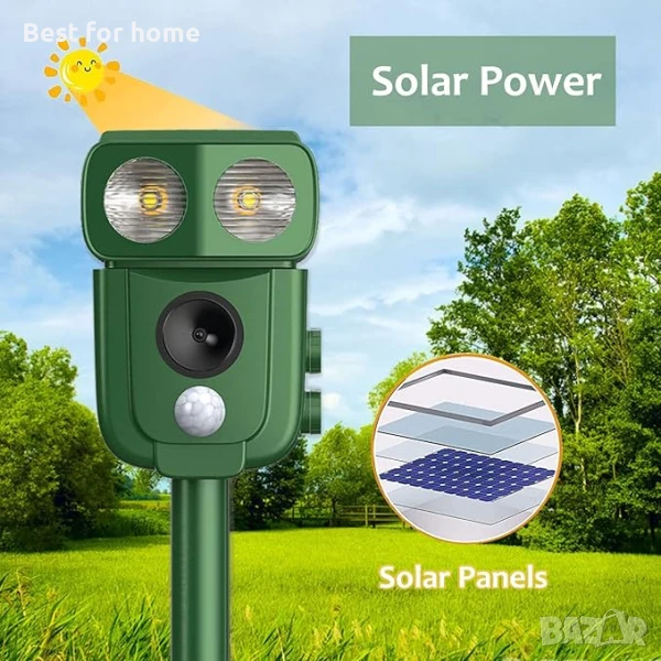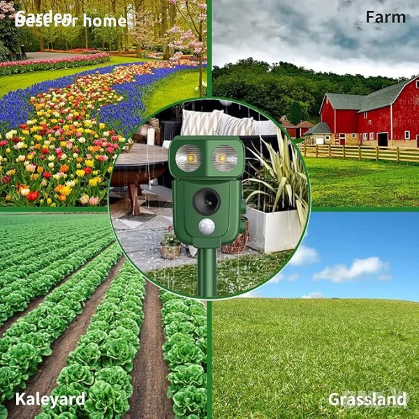 Този репелент е водоустойчив. Той е способен да издържи на нормален дъжд. Може да се инсталира навсякъде в дома, градината или верандата, вътрешни дворове, пътни пътеки, полета, тревни площи, краища, гаражи, ферми и др.