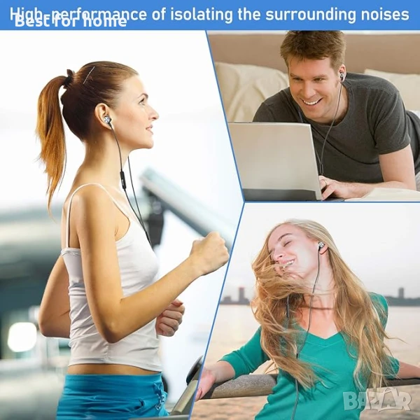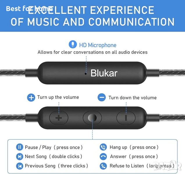 Bluetooth Слушалки за уши Blukar, удобни кабелни слушалки с микрофон, намаляване на шума, стерео звук, контрол на силата на звука за всички устройства с 3,5 мм жак