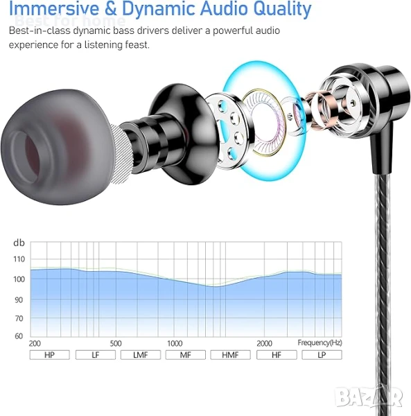 Многофункционално управление: Разполага с вграден микрофон за висококачествен звук; многофункционалният бутон на кабела предлага удобни и изчерпателни функции за управление. Независимо дали отговаряте на повикване или регулирате силата на звука, възпроизвеждането на музика или поставянето ѝ на пауза, можете да го управлявате с вградени бутони.