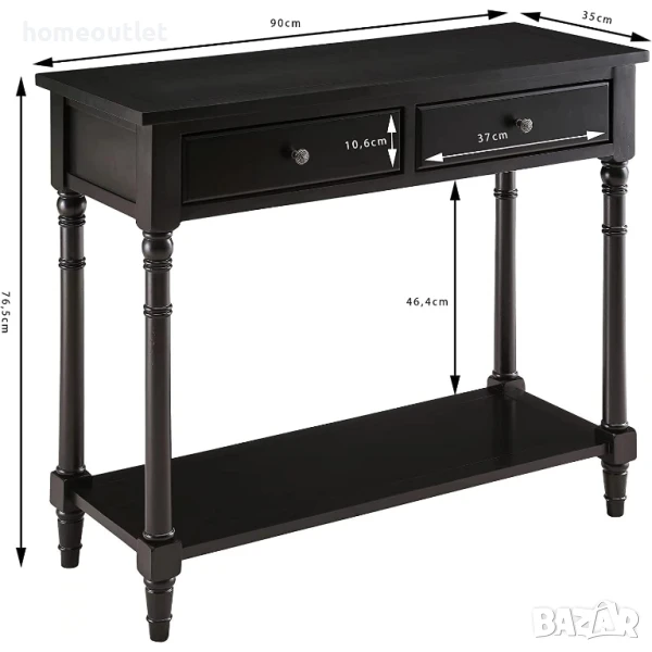 Плот на масата: 90 x 35 x 76,5 см (Ш x Д x В)