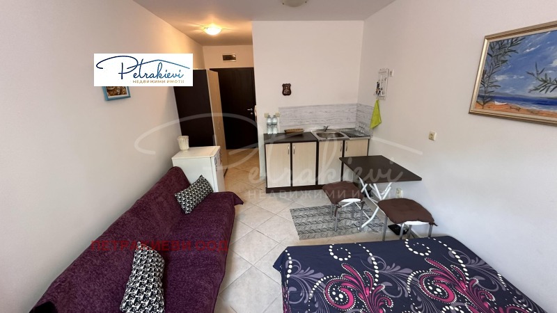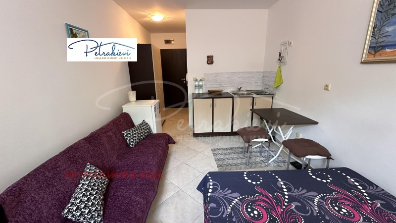 Петракиеви недвижими имоти представя студио до Слънчев бряг. Разположен в подножието на Стара планина в целогодишния комплекс от затворен тип Сънсет Кошарица в живописното село Кошарица. Заобиколен от планина и в същото време в близост до морето, само на 6 км от златистите, пясъчни ивици на Слънчев бряг и недалеч от др. курорти като Несебър,