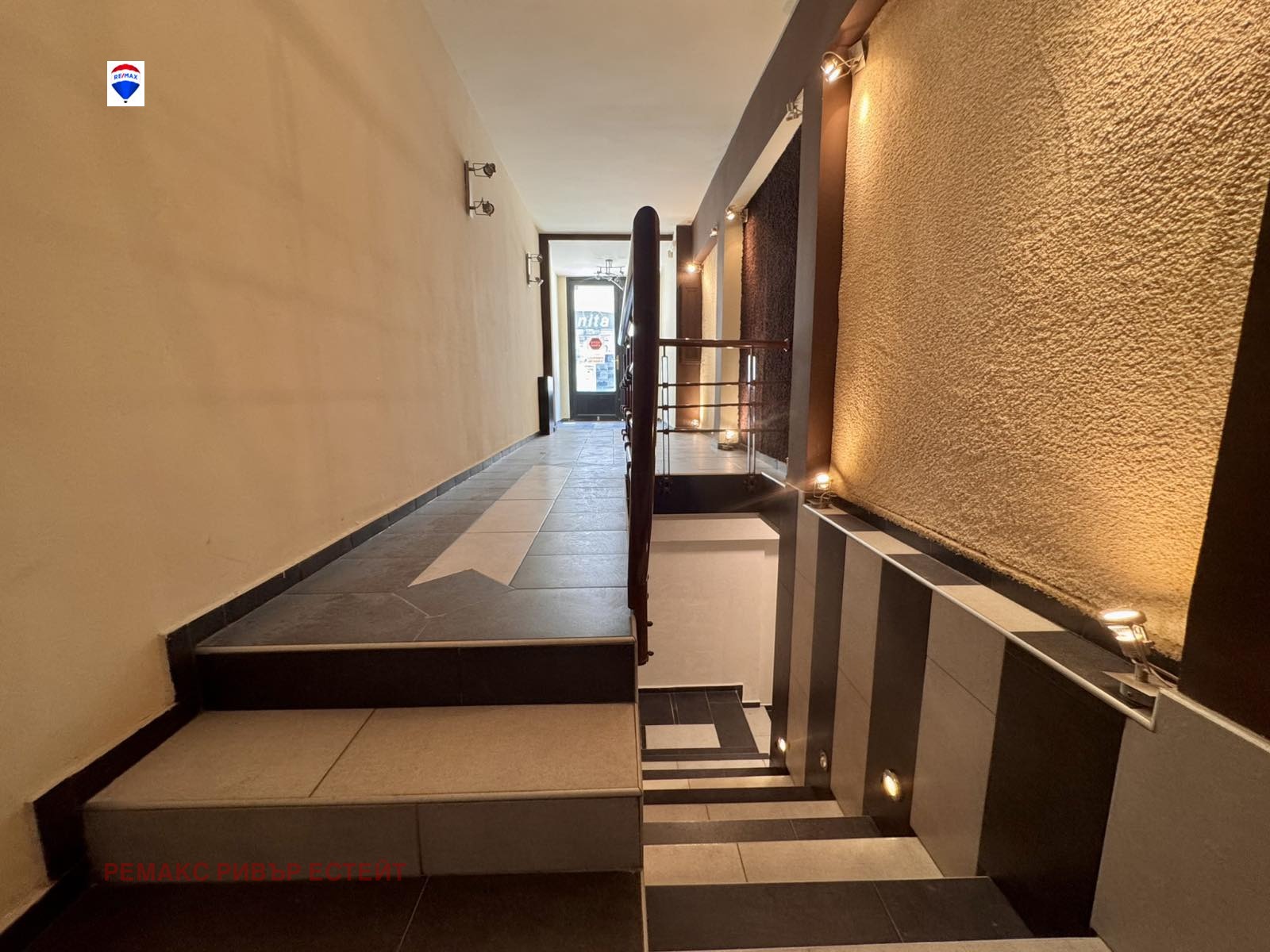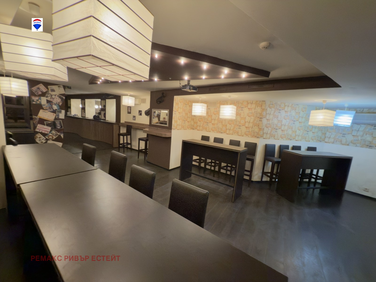 Сутерен Заведение в отлично състояние, функционирало като нощен клуб с търговска площ 85 кв.м. Модерно обзаведено със 60 седящи места, бар плот, под гранитогрес, работеща аспирация, санитарен възел, обзаведена кухня със собствен санитарен възел. Заведението разполага и с отделно аварийно стълбище.