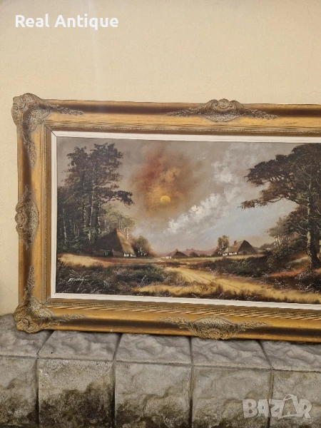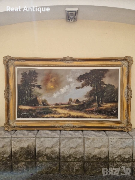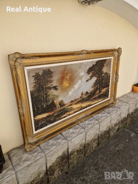 Продавам огромна много красива антикварна авторска белгийска картина масло върху платно в перфектно състояние без никакви забележки със страхотна рамка. Размери 143 см на 83 см. Прекрасно допълнение към интериора на Вашия дом офис вила ресторант хотел. Подходяща и за подарък. Работя с всички куриери. Отговарям бързо.
