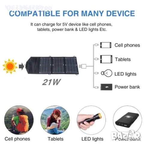 Сгъваем соларен панел, 21 Вт, директно зареждане от слънцето