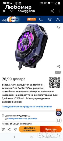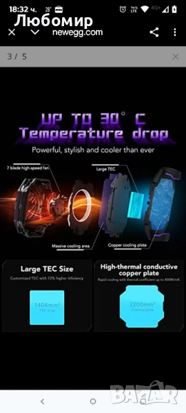 Охладител за телефон Black Shark, охладител за мобилен телефон FunCooler 3 Pro с таймер за заспиване и функция за интелигентно настройване на скоростта на вентилатора за iOS/Android (2,63-3,46 инча) Полупроводников радиатор.Охладител за телефон Black Shark, охладител за мобилен телефон FunCooler 3 Pro с таймер за заспиване и функция за интелигентно настройване на скоростта на вентилатора за iOS/Android (2,63-3,46 инча) Полупроводников радиатор.Охлаждане до 30° (86°F): Охлаждаща мощност 20W с охлаждащ чип 1404 мм², охлаждащият ефект е 3 пъти по-ефективен от обикновения охладител за телефон, охлаждане до 30° (86°F).