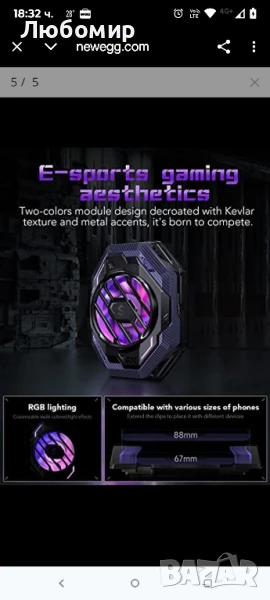 Вертикален отвор за изход на въздух: най-голямото предимство е, че топлината се отвежда нагоре и надолу, за да се предотврати нейното връщане обратно към телефона. Забележка: Избягвайте да използвате телефона продължително време, когато не играете игри, за да избегнете кондензация вътре в него.Функция на приложението: Свържете се чрез Bluetooth и приложение. Можете да настроите програма специално за вас в приложението. Например: интелигентен контрол на температурата, RGB ефективност и функции за таймер за изключване. Подходящо за смартфони с ширина 67 мм-88 мм.
