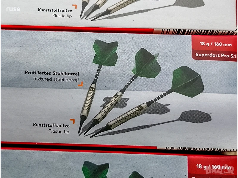- 3 меки стрелички за дартс с пластмасов връх и профилиран стоманен корпус