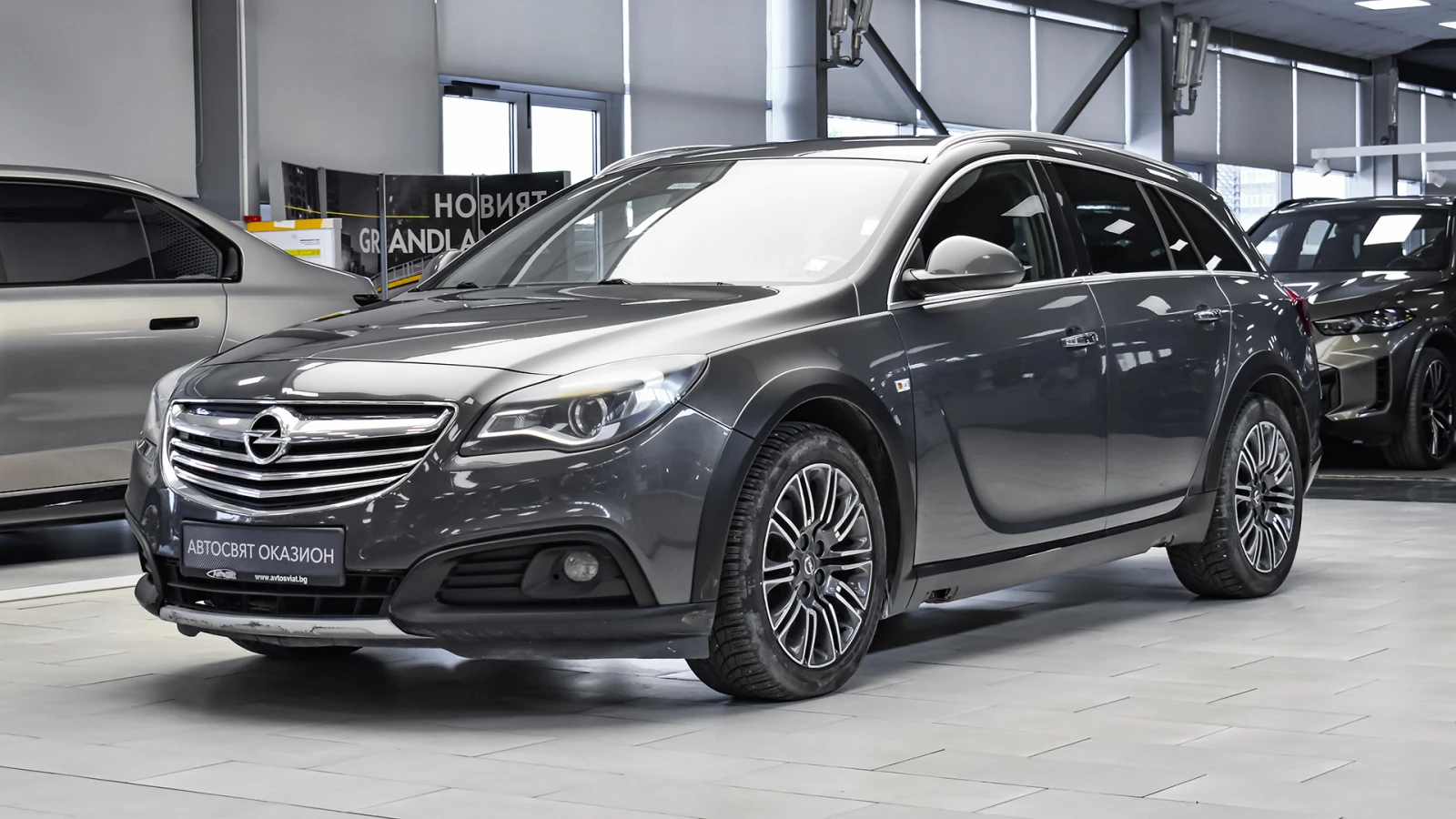 Автосвят ООД - официален представител на Opel и Mazda, предлага на Вашето внимание клиентски автомобил Opel Insignia Country Tourer 2. 0 CDTI 4x4 Automatic Допълнителни услуги: - лизинг; - сътрудничество при регистрация; - възможност за обратно изкупуване; - посредничество при застраховане; - посредничество при завеждане на щети при застрахователя. ABS - антиблокираща спирачна система CBC - контрол при спиране в завой ВА - спирачен асистент EBD - електронно разпределение на спирачното усилие ESP Plus - електронна стабилизираща програма TC Plus - контрол на сцеплението PRS - откачащи се педали при сблъсък EPS ел. усилвател на волана Hill start assist - асистент при потегляне по наклон TPSM система за следене на налягането в гумите PEPS безключово отключване и заключване, палене с бутон Предни въздушни възглавници Странични въздушни възглавници Въздушни възглавници завеси Система за подпомагане на спиране ISOFIX - система за закрепяне на детско столче SLS - контрол на стабилността в права посока EBA - ел. спирачна асистенция Multimedia Navi Разширен дисплей за инструменти и информация за водача Имобилайзер Дистанционно централно заключване Мултифункционален кожен волан Навигационна с-ма Bluetоoth / handsfree с-ма Бордкомпютър Ел. огледала Ел. стъкла Ел. отваряне и затваряне на багажника Ел. усилвател на волана Климатроник Автоматично включване на светлините с откриване на тунели Отопляеми предни седалки Регулиране на волана във височина и дълбочина Регулиране височината на шофьорската седалка Стерео уредба MP3, USB и IN/AUX Управление на мултимедията от волана Ел. ръчна спирачка Помощник при паркиране преден и заден Камера за заден ход Круиз контрол Алуминиеви джанти Фарове за мъгла Дневни светлини Автомобилът се намира в Автосвят гр. Русе За контакти: 0888 414 107 Борислав Русев - шоурум Русе 0885 003 477 Росен Вълев - шоурум Русе 0885 186 862 Иван Гърков - шоурум Плевен 0882 902 081 Нина Мучинова - шоурум Русе 0893 032 035 Марио Янчев - шоурум Пловдив Референтен номер на обявата V35286