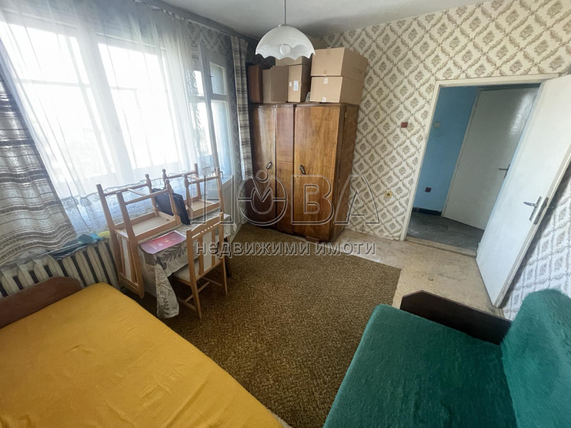 Апартаментът е в близост до централните Хали, Лидъл, училище, детска градина, Алеите,ул. Александровска, с удобни места за паркиране в района на блока. Ет. 5 ( без асансьор). Площта е разпределена по следния начин: Кухненски бокс ( с възможност за разширение към тераса), трапезария, слънчев хол, с преход към спалня и още една стая, баня, тоалетна, два коридора, две тераси. Жилището е за ремонт, но има потенциала да бъде усъвременено и преустроено според нуждите на новия собственик - на дневен тракт, с две или 3 спални. С много простор и хубава гледка, с 3 изложения, Прилежаща изба. Оглед - с ключ, и в почивните дни! НОВА-оф.3338