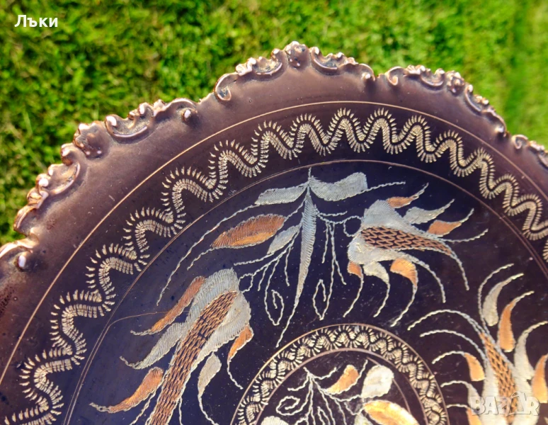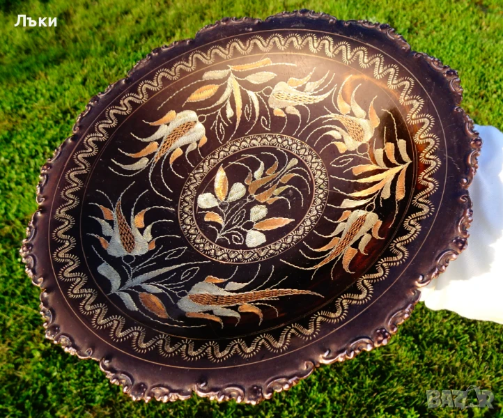 сервиране,майсторска ръчна изработка от чиста мед.Декорирана с красиви релефно писани