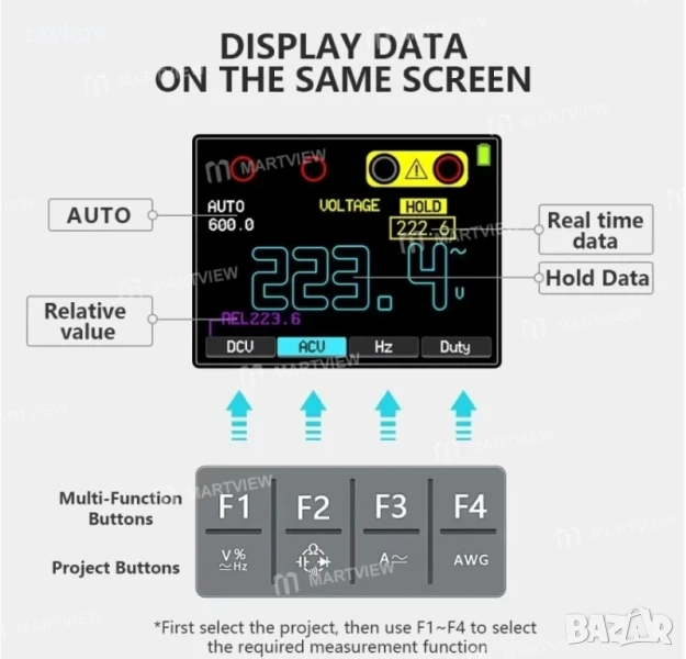 Многофункционален дизайн: 3 режима на задействане: автоматичен, нормален и единичен, относителна стойност, задържане на данни, избор на последващо светене, функция за самокалибриране, функция на курсора и др.