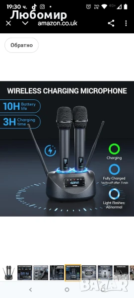 Безжично зареждане и акумулаторна батерия: Включени са два акумулаторни безжични микрофона с акумулаторни батерии от 1200mAh, което елиминира нуждата от AA батерии. Приемникът има двойни безжични зарядни бази за едновременно зареждане и на двата микрофона. След пълно зареждане (2-3 часа), микрофоните могат да се използват до 10 часа. Зарядните бази имат LED индикатори: зелен за зареждане и син за пълно зареждане.Безжично зареждане и акумулаторна батерия: Включени са два акумулаторни безжични микрофона с акумулаторни батерии от 1200mAh, което елиминира нуждата от AA батерии. Приемникът има двойни безжични зарядни бази за едновременно зареждане и на двата микрофона. След пълно зареждане (2-3 часа), микрофоните могат да се използват до 10 часа. Зарядните бази имат LED индикатори: зелен за зареждане и син за пълно зареждане.
