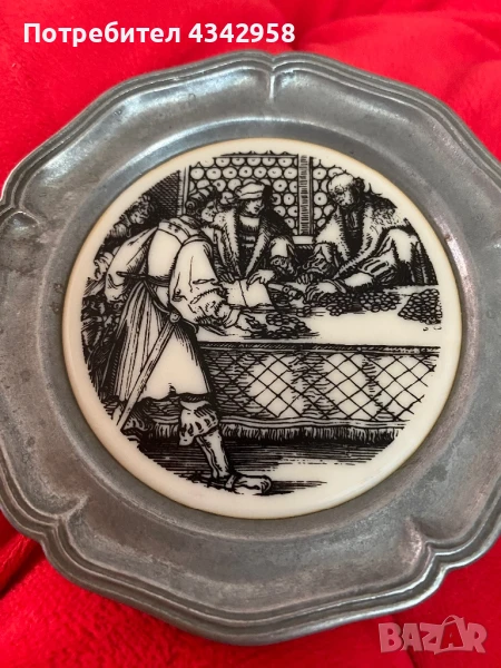 Ретро чинийка от калай и керамика.1970г. Германия → Обява 50689039