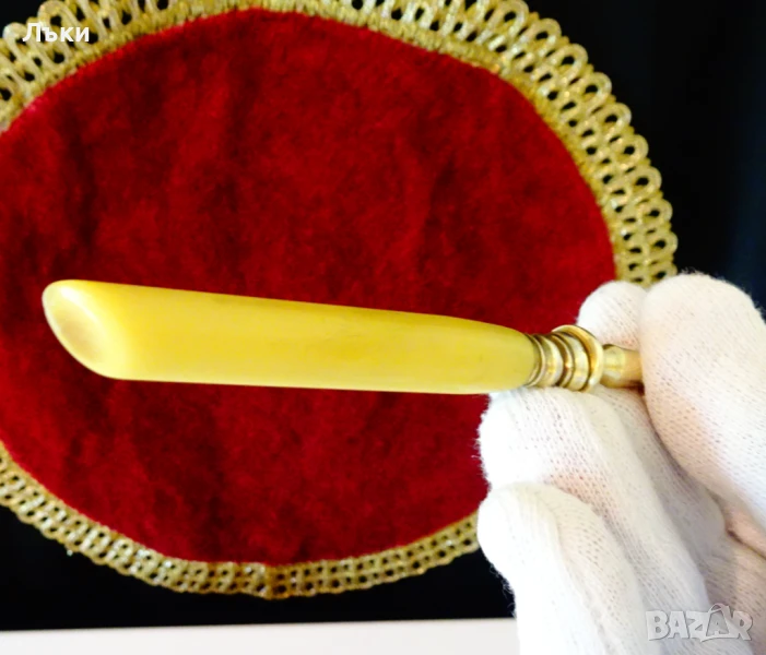 златен блясък и красив релеф.Ръкохватката е изработена от каталин,като имитация