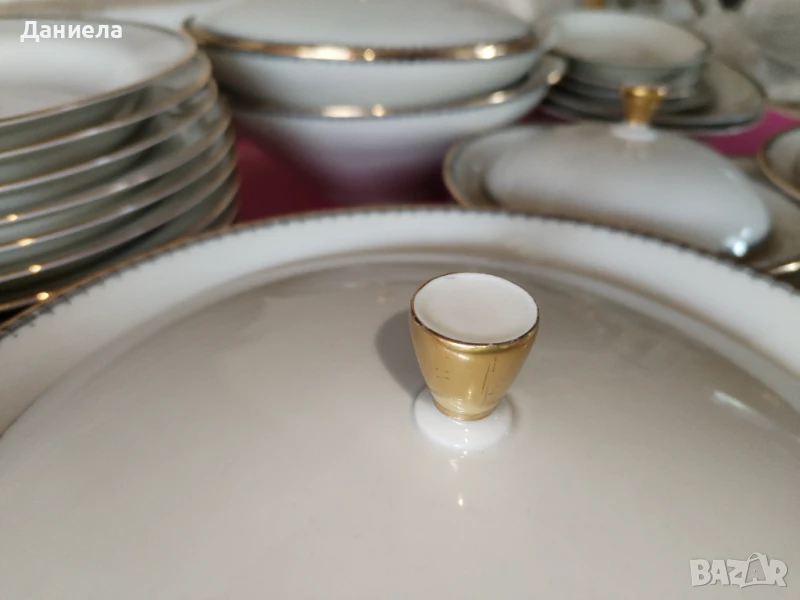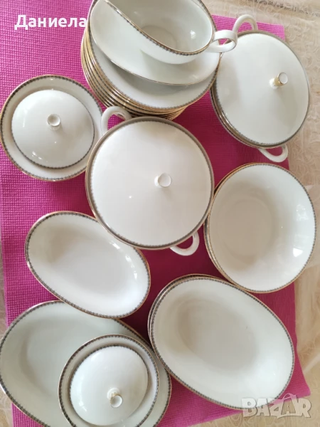 Порцеланов сервиз за хранене BAVARIA ELFENBEIN от 1935 г. със златен кант и нежни шарки по ръбовете.