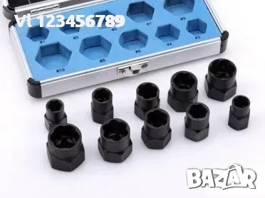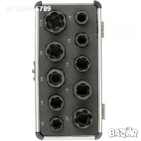 - 10 бр. екстрактори /за винтове с размери 9мм, 10мм, 11мм, 12мм, 13мм, 14мм, 15мм, 16мм, 17мм, 19мм/