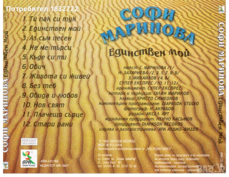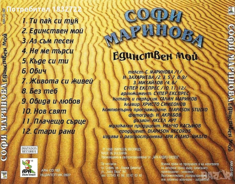 Предлагам от личната си колекция всички песни на Софи Маринова ДИСКОГРАФИЯ → Обява 50690389