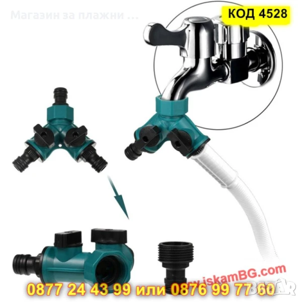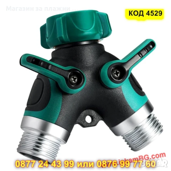 Търсите гъвкаво решение за едновременно ползване на два градински маркуча? Представяме ви практичния двоен разклонител за чешма, който ви позволява да свържете два водни източника едновременно и да ги управлявате независимо. Подходящ както за градинско напояване, така и за домакински нужди – като миене на кола, тераса или прозорци.