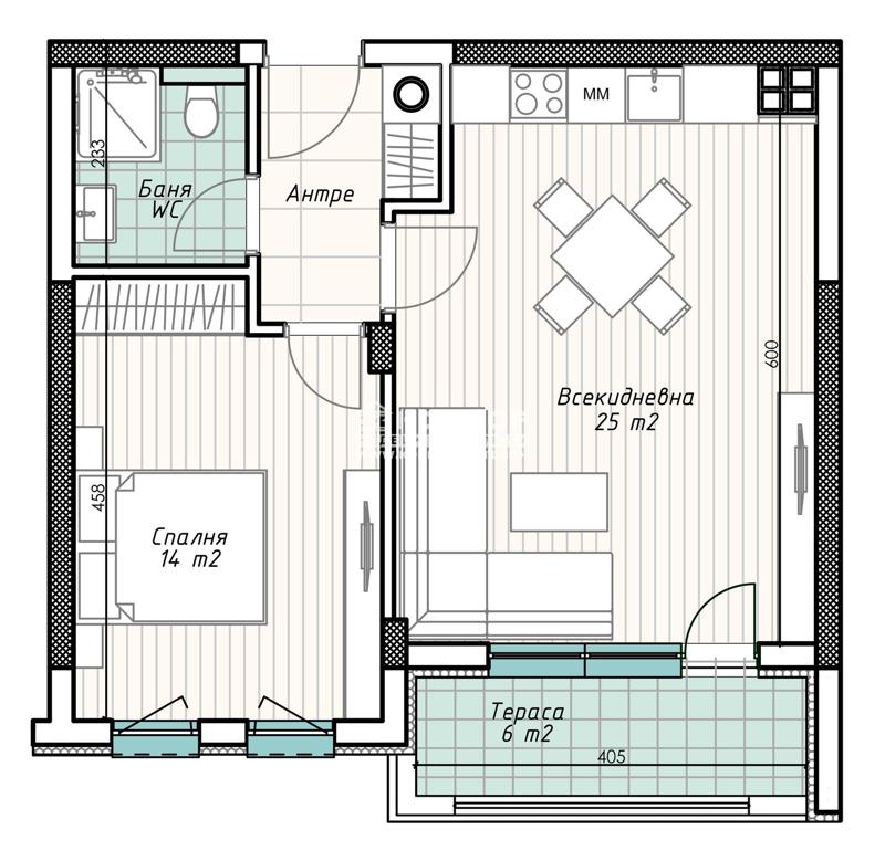 Оферта 59505: Предлагаме ви възможността да закупите просторни и светли апартаменти, намиращи се в сграда със съвременна архитектура с иновативна визия, съчетаваща модерни технологии с качествени материали на строителство, позиционирана на много тихо и спокойно място в Кършияка с невероятна зеленина!!! Апартаментите са с отлично разпределение !!! Двустаен апартамент, състоящ се от дневна с трапезария и кухненски бокс - 25кв.м. с излаз на тераса, една самостоятелна спалня - 14кв.м., баня с тоалетна, входно антре. Към всеки апартамент се закупува изба на цена 2000 !!! Сградата се строи от реномирана фирма с множество готови сгради в града, като можем да ви покажем качеството на изпълнение и материалите които се използват. Жилищата се отвършват според всички изисквания за качествено строителство, хидравличен асансьор, блиндирани входни врати, висок клас ПВЦ - дограма. Свободни Гаражи на партерно ниво и външни Паркоместа. Разсрочено плащане в рамките на строителството. СТРАХОТНА ИНВЕСТИЦИЯ! ВИЖТЕ ОЩЕ ИЗГОДНИ ОФЕРТИ НА https://www.kondorimoti.com/ С ЕЖЕДНЕВНА АКТУАЛИЗАЦИЯ!