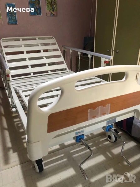 Ортопедично легло ERGO Многофункционално легло На колела със стопери Подвижна горна и долна част Ръчно управление Странични предпазни ограждения ,които с пуш бутон се вдигат и свалят. Леглото е като ново Малко използвано Изцяло метално Двете табли са пластмасови. Леко и лесно мобилно