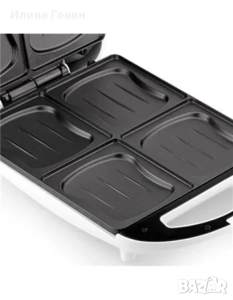 четири сандвича едновременно. Оборудван с автоматичен термостат,