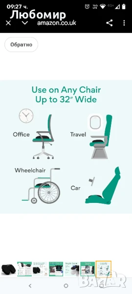 БЪРЗО ВЪЗСТАНОВЯВА СЕ: Повечето възглавници за седалки се нуждаят от 60+ секунди, за да се върнат към първоначалната си форма. Нашата пяна Accu-Sense се възстановява само за 5 секунди.АДАПТИРА СЕ КЪМ ВАШЕТО ТЯЛО: Нашият ергономичен дизайн се адаптира към контурите на вашето тяло. Той повдига опашната ви кост над твърди повърхности, поддържайки правилното подравняване на гръбначния стълб.ОПТИМАЛНА ПЛЪТНОСТ: Повечето възглавници за седалки имат ниска плътност, по-малка от 1,8 кг – те се сплескват бързо и не осигуряват необходимата опора. Нашата пяна с плътност 1,9 кг осигурява равномерно разпределение на теглото, без да провисва или потъва.Нашата възглавница за седалка поддържа гърба, опашната кост, бедрата и краката. Дизайнът без ръбове улеснява микродвиженията, повишавайки комфорта в продължение на 8+ часа. 9 от 10 потребители са изпитали по-малко напрежение в гърба, когато са използвали нашата възглавница за седалка върху облегалка с ръб.𝐄𝐑𝐆𝐎𝐍𝐎𝐌𝐈𝐂 и 𝐒𝐄𝐂𝐔𝐑𝐄 𝐃𝐄𝐒𝐈𝐆𝐍: Обикновените възглавници за седалки имат плосък дизайн, който не предлага адекватна опора. Нашият ергономичен дизайн повдига опашната кост над твърдите повърхности. Той поддържа долната част на гърба, бедрата и седалищния нерв за максимален комфорт и правилно подравняване на гръбначния стълб.𝐒𝐓𝐀𝐘𝐒 𝟑𝐗 𝐂𝐎𝐎𝐋𝐄𝐑: Стандартните материи като найлон ви карат да се потите. Те не позволяват на въздуха да циркулира, задържайки топлината там, където е най-малко желателна. Нашето дишащо покритие FreshTouch отвежда топлината и потта от тялото.