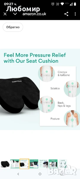 Възглавница за опашна кост Supportiback Premium - Ортопедична възглавница за седалка кола/офис/дом