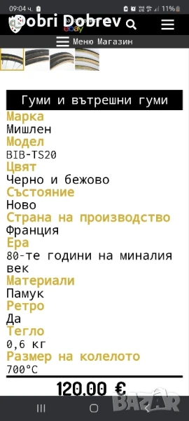 шосейна гума Michelln bib ts20 x 700 622c 20c памук oт 80те → Обява 50693960