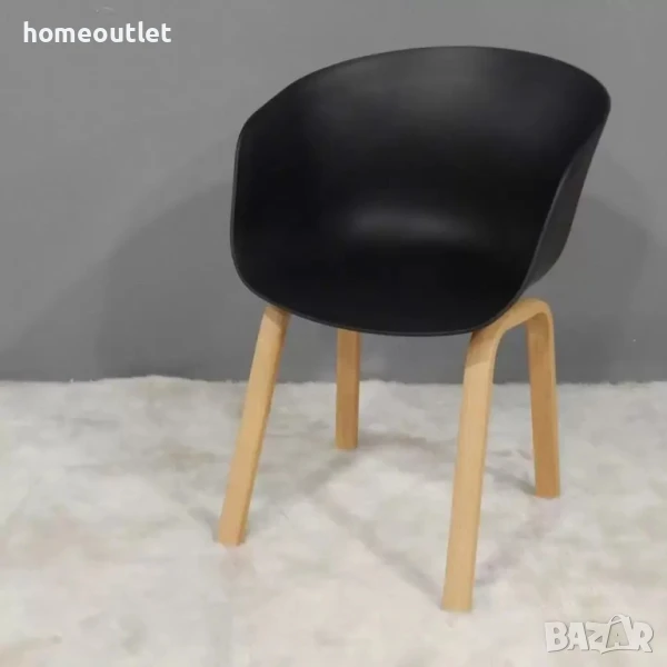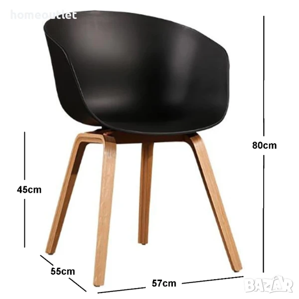 С ергономично извита рамка на седалката от матово черен полипропилен и крака от естествено дърво със светло покритие, тези столове са идеални за трапезарии, чакални, офиси или модерни пространства.