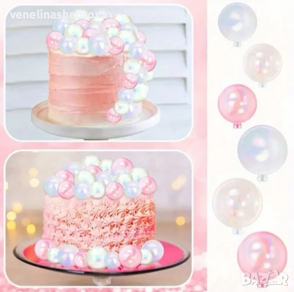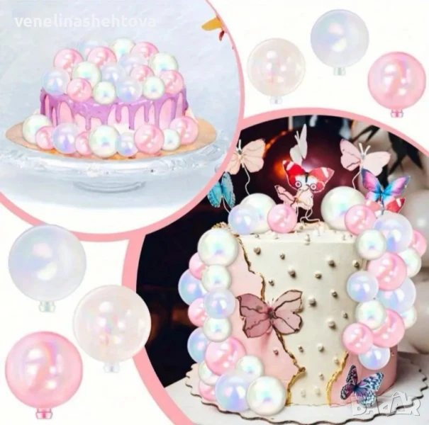 42 броя прозрачни бели розови топчета топки за декорация на торта → Обява 50693987