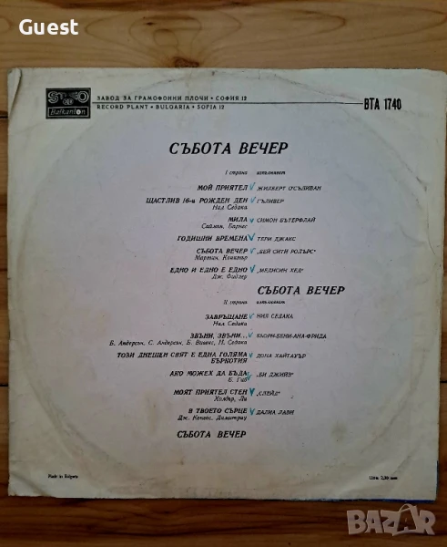 Грамофонна плоча Събота вечер → Обява 50694044
