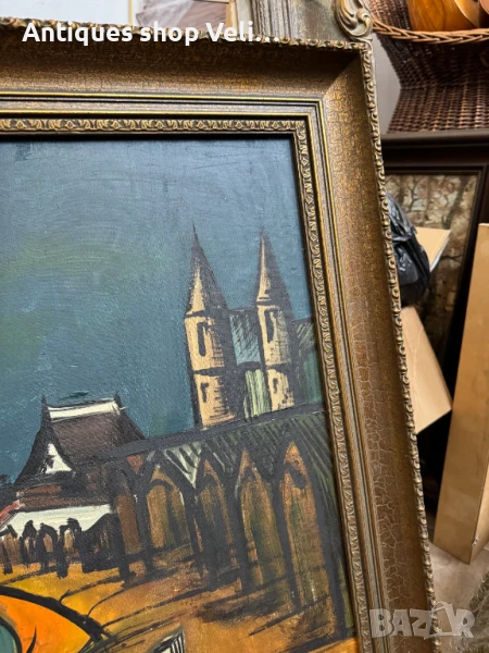 Стара маслена рамкирана маслена картина. Добро състояние. Предлагаме доставка с Еконт и лично предаване за градовете Велико Търново, Русе и Сливен! Размери-93/85см.