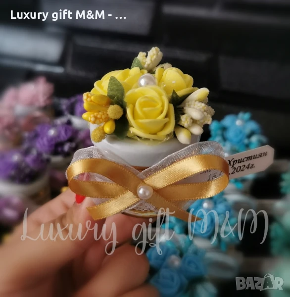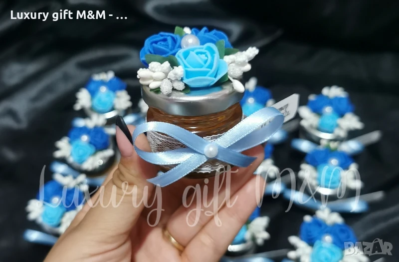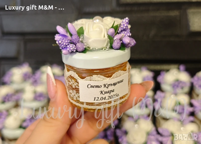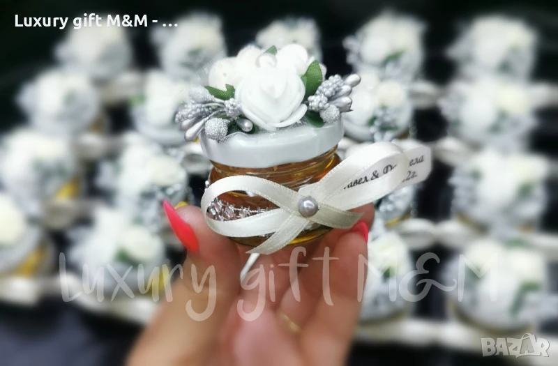 Подаръци за гости, подаръчета за гости - бурканче с мед "Трите рози"