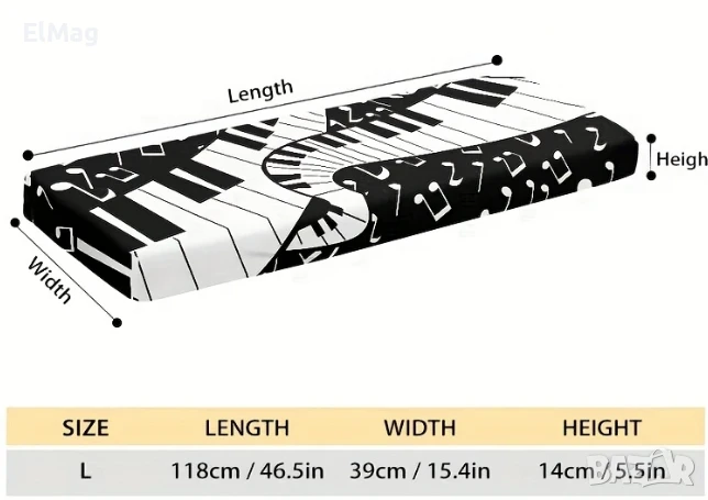 Еластична защита за клавишни инструменти. Прахо и влагоустойчив материал. Непрозрачен, плътен. Не се хлъзга и може директно да се пере в пералня. Аксесоар, подходящ за синтезатори, дигитални пиана и други.