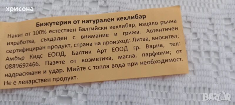 Кехлибарени обици , в приятен кехлибарен (меден) цвят,нови ,има описание за кехлибара,сребърна закопчалка.
