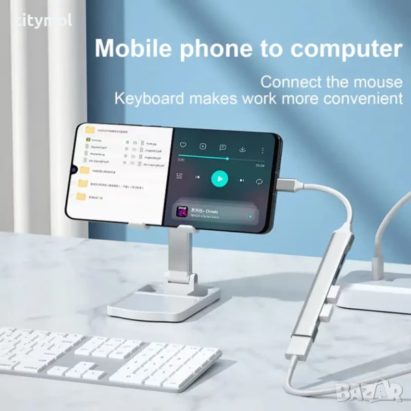 TYPE C Хъб с 3 x USB3.0 5Gbps + 2 TYPE C порта, пренос на данни, мулти сплитер за PC, лаптоп, смартф