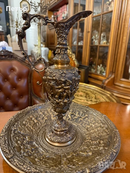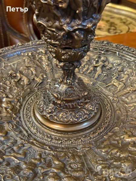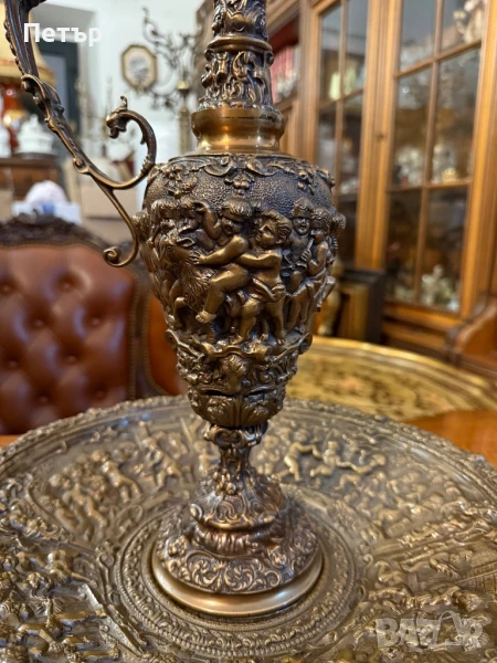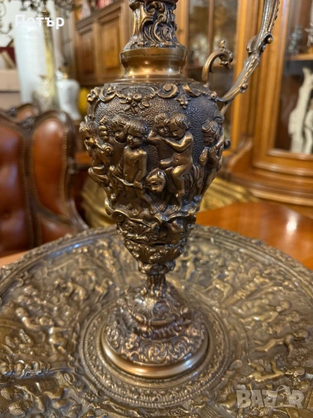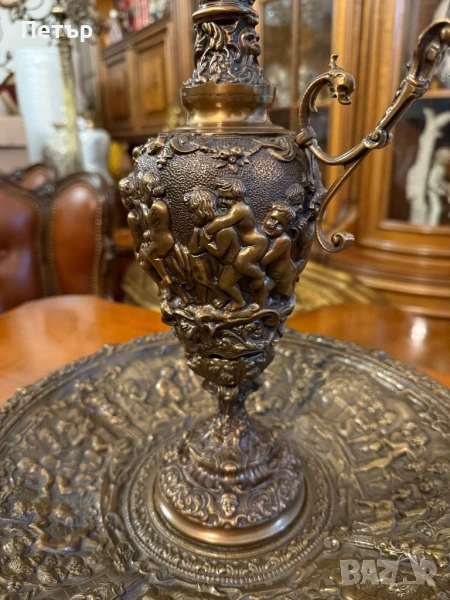 Голямо бронзово плато с масивна кана! → Обява 50695840