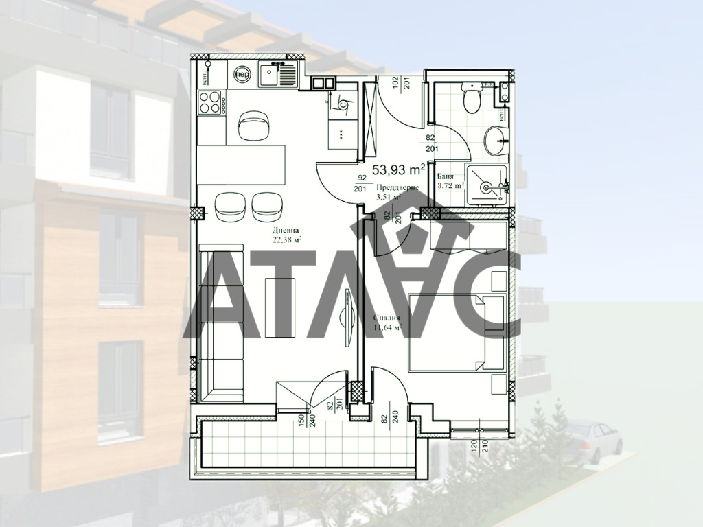 Имотът се състои от светла дневна с кухненски бокс, една спалня, баня с тоалетна, входно антре и тераса. Разпределението е добре обмислено и създава усещане за простор и комфорт. Жилището е подходящо както за живеене, така и за инвестиция.