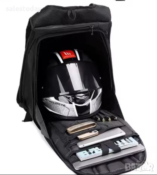 Аеродинамично оформен външен дизайн, който намалява съпротивлението при каране.Здрава конструкция с подсилен корпус и твърд гръб, за да поддържа форма дори когато е празна.Устойчива на атмосферни влияния-водоустойчива и няма да се деформира от натиска на въздушната струя.Предвидена да не уморява при дълго каране.Разполага с:-Голямо основно отделение с множество джобове.-Защитното отделение за лаптоп до 15-инча.-Защитно отделение за таблет и отделение за смартфон.-Отделение за съхранение на обувки.-Свалящ се колан, за да се предотврати надраскване на резервоара.-Ергономичен и луксозен заден панел за максимален комфорт.-Напълно регулируеми и ергономични подплатени презрамки с бързи изходникатарами и без приплъзване на гръдната кост за удобно и сигурноприлягане.-Регулируем колан за талията.-Регулируем гръден колан.-Сваляща се каишка за носене на каска.-Светлоотразителни ленти, които добавят допълнителна сигурност през нощта.-Скрита дръжка за носене.-Еластично покривало за самата раница.Обем: 22 литраРазмери:Височина:55смШирина:38смДебелина:18см
