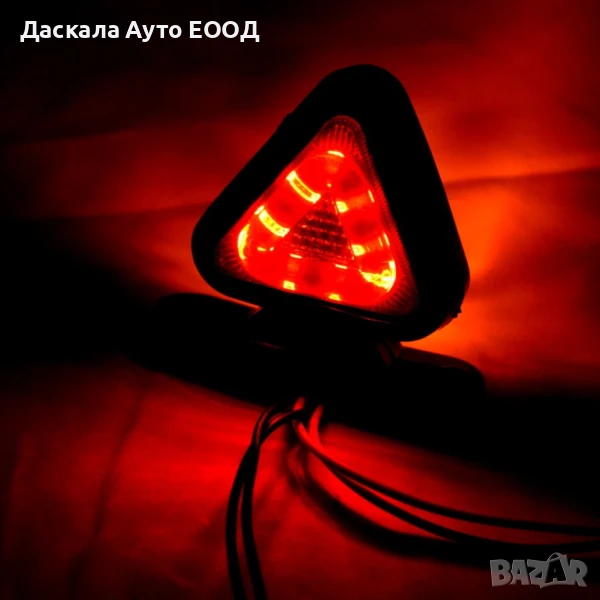 1бр. ОПУШЕНО триъгълно ЛЕД LED рогче с 18 диода, червено-оранжево , 12-24V