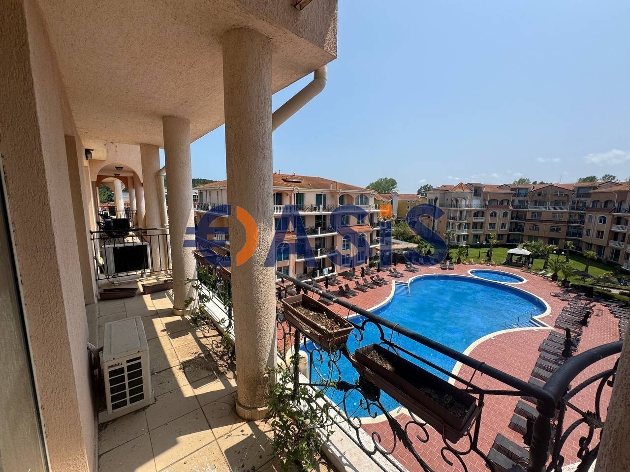 Апартаментът се намира на четвърти етаж и е с обща площ 84,78 кв.м. има асансьор. Просторната и светла всекидневна е комбинирана с кухня и трапезария, а уютната спалня разполага с релакс. Банята е оборудвана с всичко необходимо, а от терасата се открива приятна гледка към басейна и частично към морето. Жилището е обзаведено, оборудвано с техника. Необходим е козметичен ремонт.