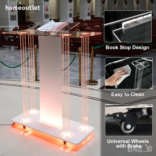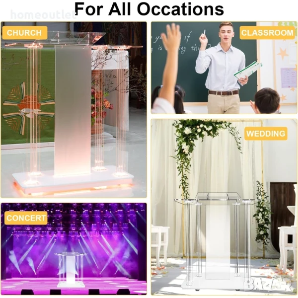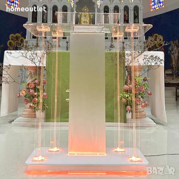 Този акрилна катедра е идеална за църкви, училища и конферентни зали, но е перфектен избор и за сватби, семинари, приеми, ресторанти и домашна употреба. Модерният външен вид и високата функционалност го правят отличен избор за вашето следващо събитие.