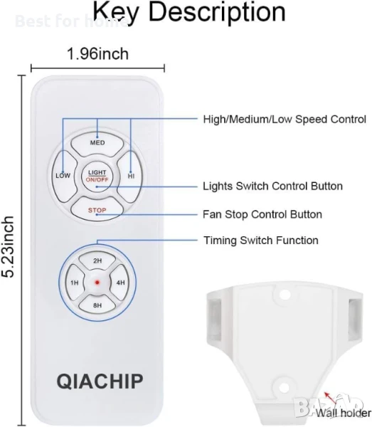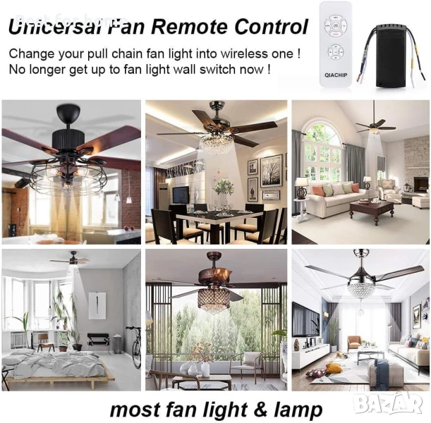 [wildly Replacement]: Универсалният комплект за дистанционно управление на таванни вентилатори qiachip може да се използва с повечето лампи за таванни вентилатори, като Hunter, Harbor Breeze, Westinghouse, Honeywell и други известни марки. Този комплект безжично управление преобразува традиционните таванни вентилатори с лампи в дистанционни. Обхват на приложение: дом, ресторант, офис, хотел, клуб, гараж. Моля, обърнете внимание, че приемникът няма функция за обратно въртене.