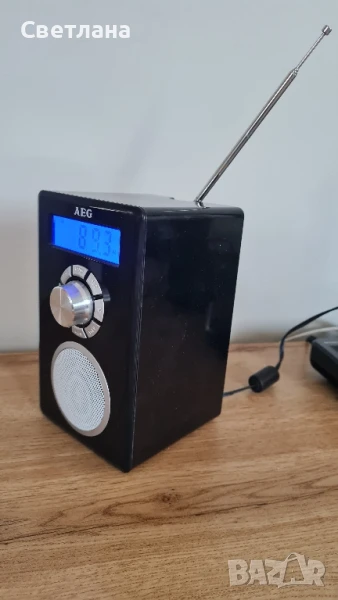 Хубав прием и звук. Има часовник и таймер. Работи с 4×АА батерии или адаптор, който включен в комплекта. Леки козметични забележки.