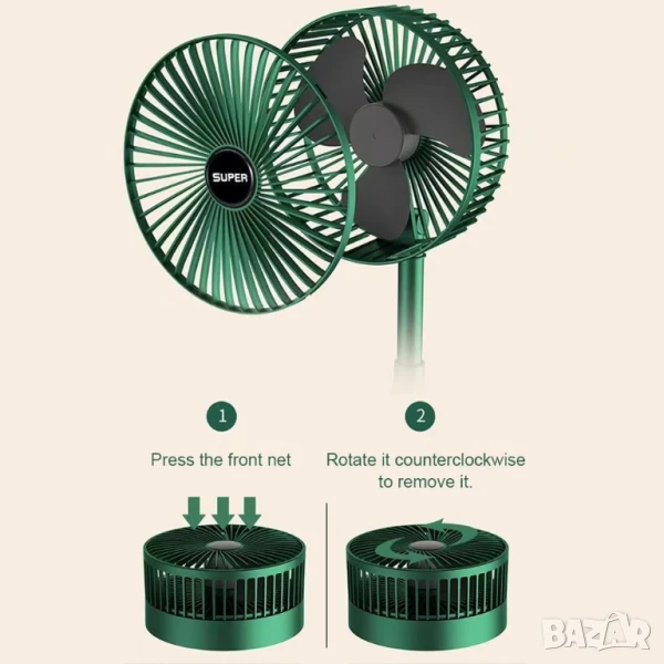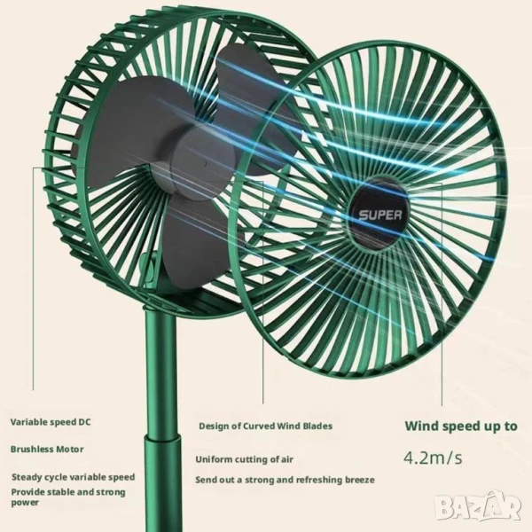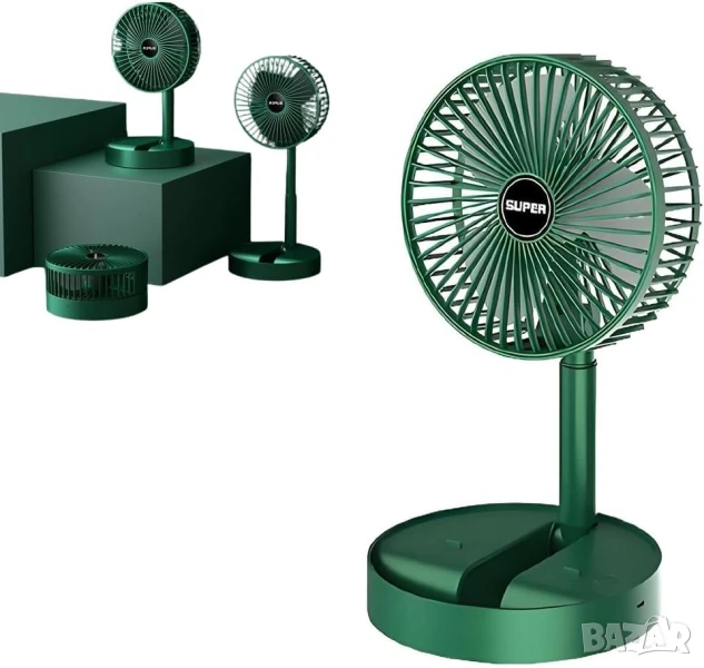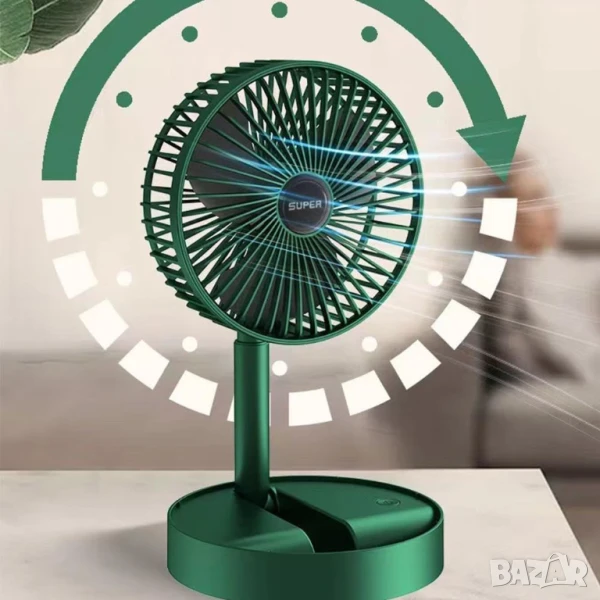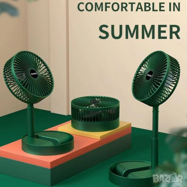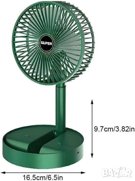 Мини вентилатор е с регулируема телескопична стойка, височината на вентилатора може да се регулира. Това Ви дава възможност да се използва като настолен вентилатор или стоящ вентилатор по всяко време. Основата на usb вентилатора може да се използва като стойка за телефон.