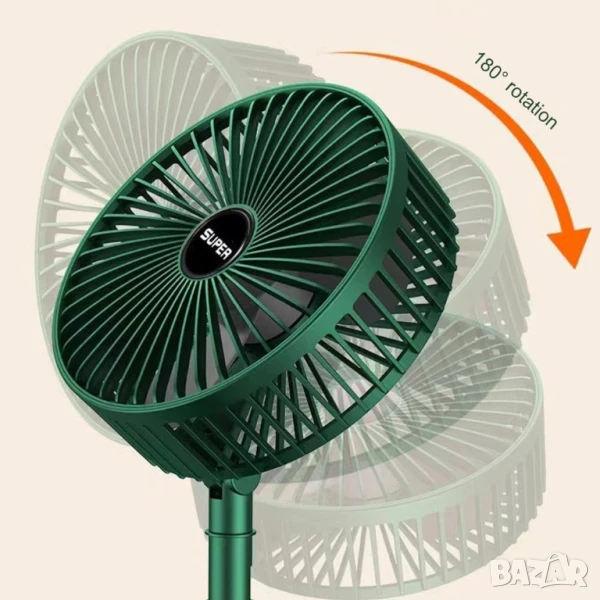 Преносимият вентилатор разполага с регулируемо въртене на 180° и 3 скорости, за да отговори на различните ви нужди от охлаждане през горещото лято. Управление с един бутон и лесна работа.